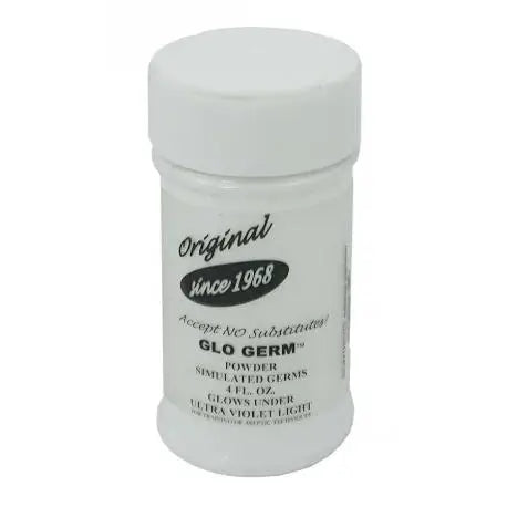 Bug BeamsTM Powder - is 40 grams of powder that simulates Germs under Ultraviolet light.